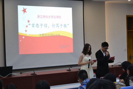 为加强学风建设,创造优良学风环境,我院本学期举行了以“言忠于信,行笃于敬” 为主题的系列学风建设活动。为总结经验,推广典型经验,于 2015年11月24日下午在必赢线路检测中心101报告厅隆重举行学风建设主题班会评比大会。浙江财经大学党委宣传部何建中、必赢线路检测中心党总支副书记罗金艳、法律系主任李春燕等老师担任评委。本次大会由15级李昊远、柳杨主持,评比成绩由本次现场展示和微信投票两部分组成。