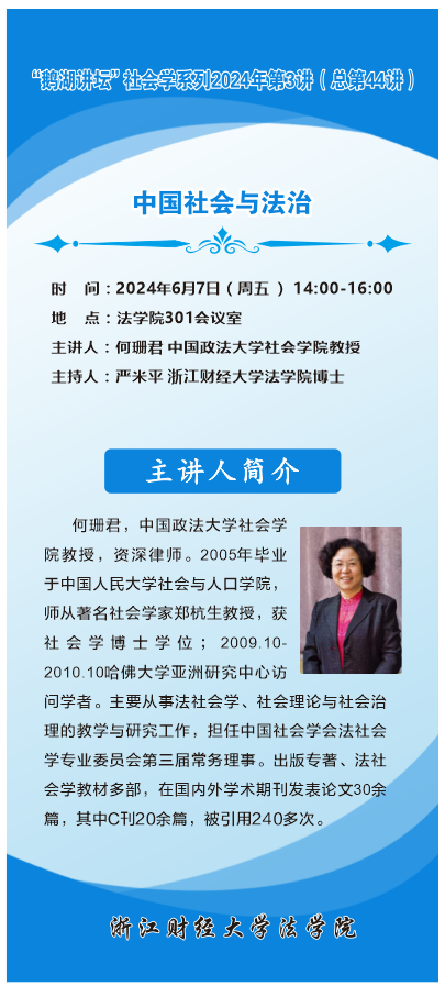“鹅湖讲坛”社会学系列2024年3讲(总第44讲)中国政法大学何珊君教授